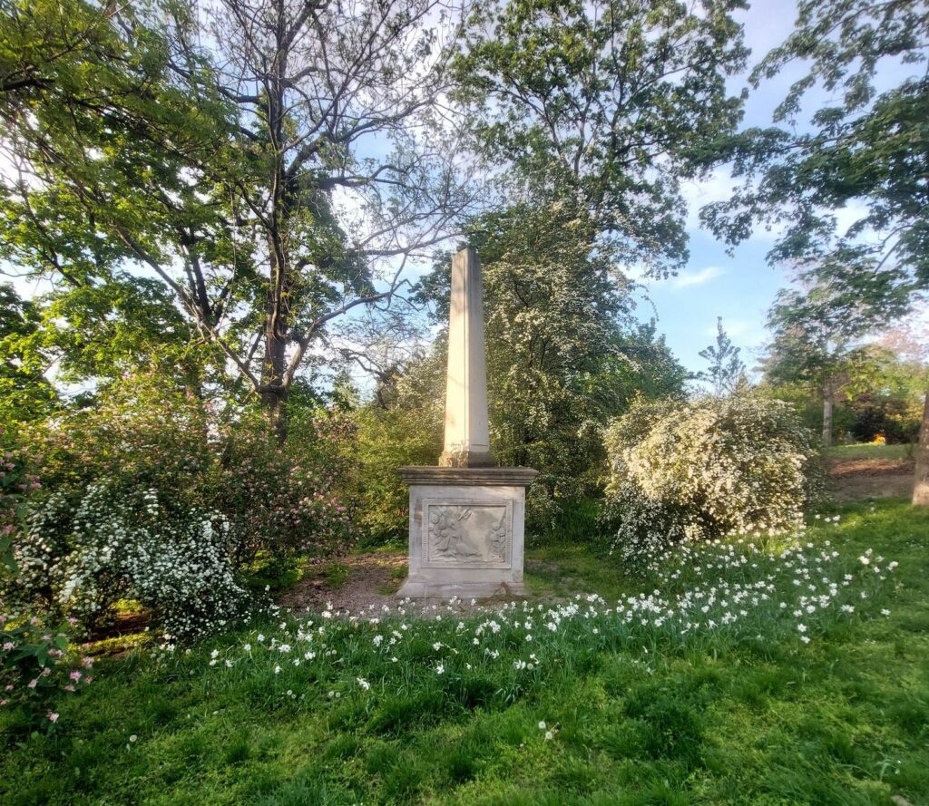 Po smrti své milované ženy Brigitty roku 1810 nechal hrabě v zahradě postavit trojboký pískovcový obelisk, dnes stojící v Riegrových sadech, později doplněný reliéfem ptáka s mláďaty. Po její smrti se postupně uzavíral do sebe a zbytek života věnoval především odborné práci.