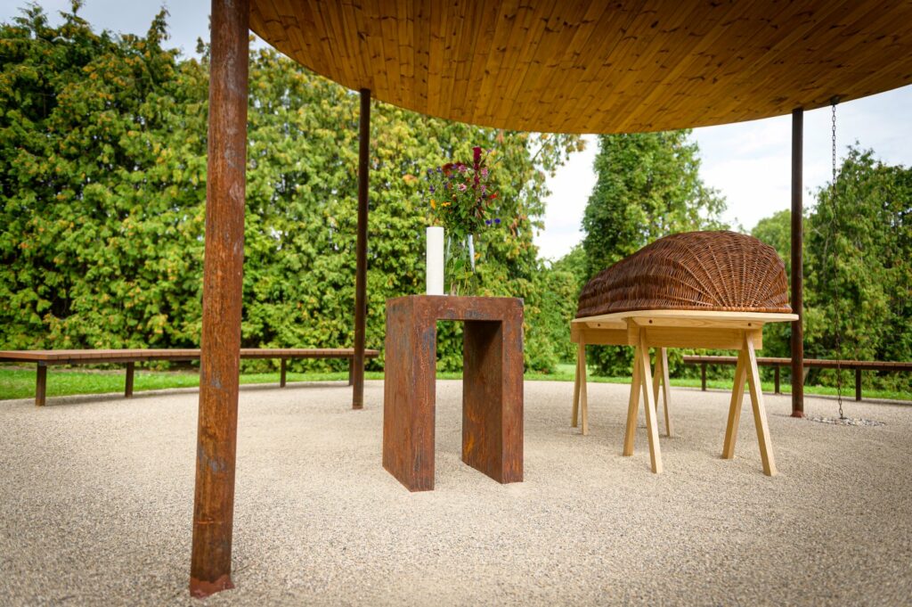Pro přírodní pohřebiště, jako je Luční hřbitov v Ďáblicích, platí speciální požadavky: rakve musí být z rozložitelného materiálu, a to včetně vnitřní úpravy a všech použitých textilií. Pro přírodně laděné pohřby a ekologická pohřebiště nabízíme nelakované, nemořené rakve bez plastových prvků, které se v půdě nejrychleji rozloží a nezatěžují životní prostředí umělými látkami. Součástí naší nabídky je také originální proutěná rakev. Je ručně pletena z přírodního proutí, což je lokální, obnovitelný materiál. Vizuálně působí lehce a civilně a technicky splňuje požadavky pro uložení do země na ekologických pohřebištích.